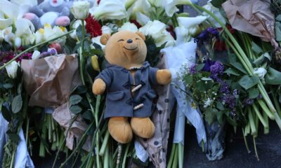 Надвор од главниот влез на училиштето има слики од осумте деца кои загинаа во масовното пукање во средата, заедно со пишани пораки од пријателите и семејството....