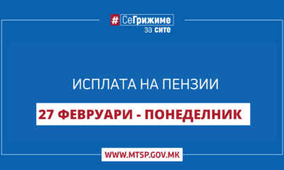 Министерството за труд и социјална политика известува дека на 27.2.2023 година (понеделник) почнува етапната исплата на пензиите за февруари, кои продолжуваат да се исплатуваат предвремено. Подигнувањето...