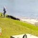 На социјалните мрежи се појави видео на кое се гледа моментот кога алигатор од 3,3 метри нападнал жена која го шетала своето куче покрај езеро во...