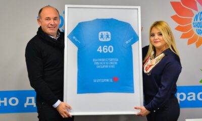 „Ви благодариме од срце! 460 деца и млади без родителска грижа растат во семејство благодарение на вас“, пишува на врамениот дрес, кој Ракометната федерација на Македонија...