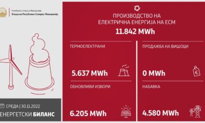 АД ЕСМ на 30.11.2022 година произведе 11.842 MWh електрична енергија, со што целосно ги задоволи потребите на домаќинствата и малите потрошувачи. Во Термоелектраните произведени се 5.637...