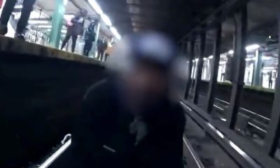Полицијата на Њујорк објави видео на кое се гледа како полицајци и друг маж спасуваат човек од шините на метрото Харлем, неколку моменти пред возот да...