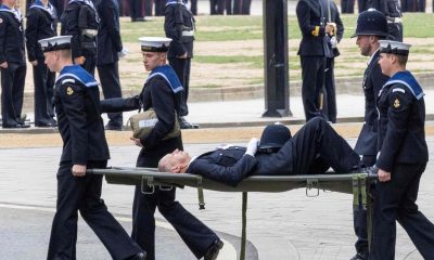 Дежурен полицаец за време на погребот на кралицата се онесвести и беше однесен од медицинските лица на носилки неколку минути пред да помине поворката со ковчегот...