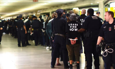 Стотици луѓе беа уапсени кога полицијата разби голема демонстрација на претежно еврејски њујорчани кои ја презедоа главната сала на станицата Гранд Централ во знак на протест...