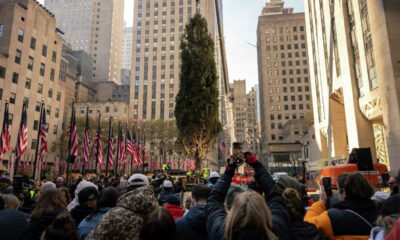 Новогодишната елка од Центарот Рокфелер пристигна во Њујорк, означувајќи го почетокот на празничната сезона во Големото јаболко. Норвешката смрека од 22,5 метри беше донесена во Центарот...
