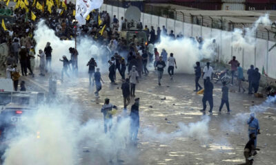 Демонстрантите се обидоа да маршираат до американскиот конзулат во Карачи, Пакистан, по убиството на лидерот на Хезболах, Хасан Насрала. Толпата се судри со безбедносните сили додека...