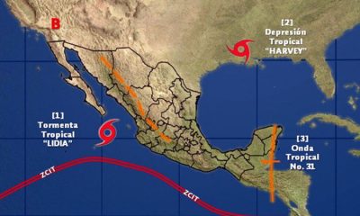 Тропската бура „Лидија“ се формира над Тихиот океан, на околу 290 километри југоистично од мексиканската сојузна држава Долна Калифорнија. Бурата се заканува да прерасне во ураган....