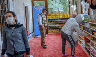 На влезот од една истанбулска џамија полиците кои обично се резервирани за чевлите на верниците се наредени со пакети со тестенини, шишиња масло, бисквити – како...