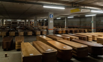 Затворен паркинг во Барселона е претворен во огромен импровизиран додаток на мртовечницата во време кога градот се бори да се справи со бројот на починати од...