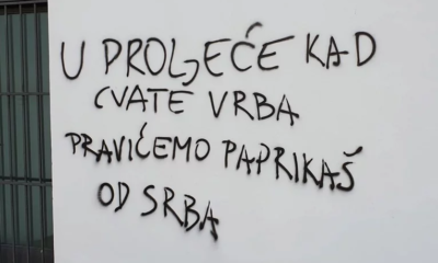 Нов графит со говор на омраза кон Србите осамна во центарот на Сплит, а авторот на белиот ѕид напишал: „Напролет кога цветаат врбите, ќе правиме паприкаш...
