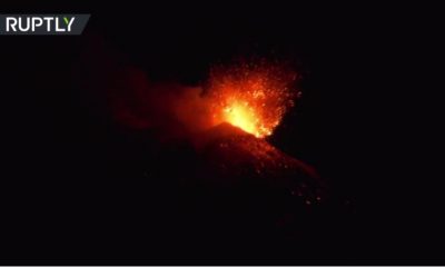Етна, античкиот вулкан лоциран на Сицилија, Италија, беше снимен во понеделникот како исфрла млазови лава кон небото. На видеото обезбедено од видеоагенцијата „Раптли“ на РТ се...
