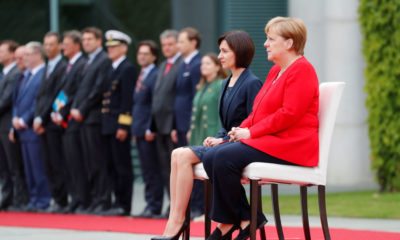 Германската канцеларка Ангела Меркел повторно го прекрши протоколот седејќи за време на изведување на националната химна денеска кога ја пречека новата молдавска премиерка Маја Санду, пренесува...