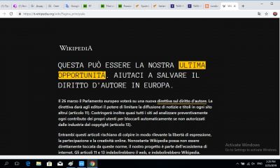 Италијанскиот разгранок на „Википедија“ денес беше пријавен како недостапен за корисниците на интернет во знак на протест на неговите автори и соработници против предложената реформа на регулативата на ЕУ во врска...
