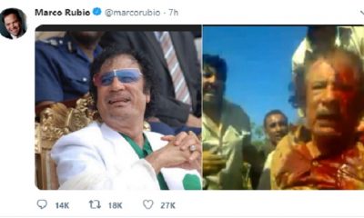 Американскиот сенатор Марко Рубио објави на својот профил на Твитер фотографија од бруталното убиство на либискиот лидер Моамер Гадафи како суптилна закана кон венецуелскиот претседател Николас...