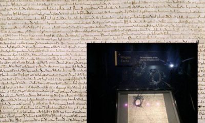 Еден човек е уапсен во древната англиска катедрала во Солсбери во четвртокот попладне кога се обидел да го скрши стаклото под кое бил изложен оригинален примерок...