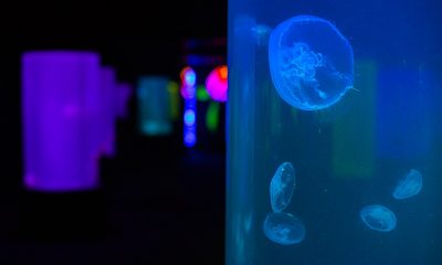 Аквариумот „Ту оушанс“ во Кејп Таун отвори нова изложба со медузи. Месечевите медузи се смесени во цилиндрични аквариуми, а просторијата е уредена со огледала и флуоресцентни...