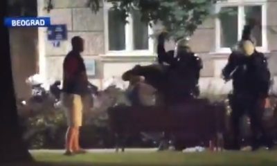 Полицијата во Белград, по неколкучасовни масовни протести, почна да ги тепа луѓето, дури и оние што седат мирно. Како што може да се види во видеото...