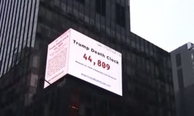 На њујоршкиот Тајмс сквер поставен е часовникот на смртта на Трамп, кој го покажува бројот на починати од коронавирус во САД за што авторот го обвинува...