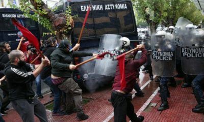 Солзи и молотови коктели беа фрлени за време на судирот меѓу полицијата и студентите кои маршираа во центарот на Атина денес во знак на протест против...