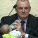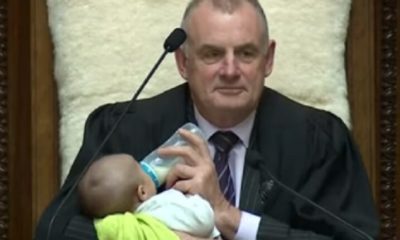 Претседателот на парламентот во Нов Зеланд, Тревор Малард, денес хранеше шестнеделно бебе, син на еден од пратениците, и тоа додека траеше дебатата за цената на горивата....