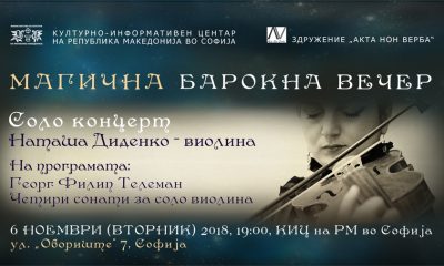 На 6 ноември (вторник), со почеток од 19 часот, во Културно-информативен центар на Република Македонија во Софија ќе се одржи соло-концертот „Магична барокна вечер“ на Наташа...