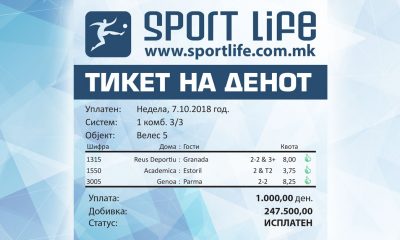 Со предвидување три гостински победи и голови во мечевите меѓу „Џенова“ и „Парма“, „Реус Депортиу“ и „Гранада“ и „Академика“ и „Есторил“ во неделата, типувач од Велес...