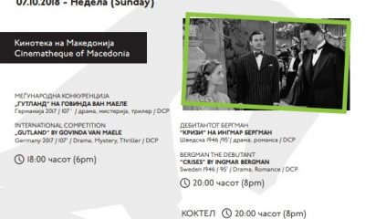 Во Кинотека на Македонија, вечерва со почеток во 20 часот ќе биде прикажан дебитантскиот филм на Ингмар Бергман, „Криза“. Ова е дебитантскиот филм на Бергман како...