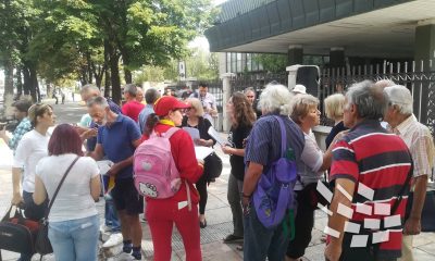 Триесетина граѓани излегоа на протест пред Македонската академија на науките и уметностите (МАНУ), каде што се одржува научна расправа на тема „Спогодбата од Преспа: Меѓународно значење...