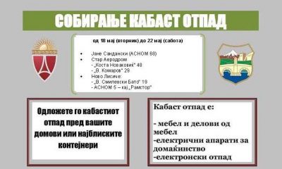 Општина Аеродром и ЈП „Комунална хигиена“ организираат акција за собирање кабаст отпад на територијата на општина Аеродром. Контејнери ќе бидат поставени на четири локации од 18...