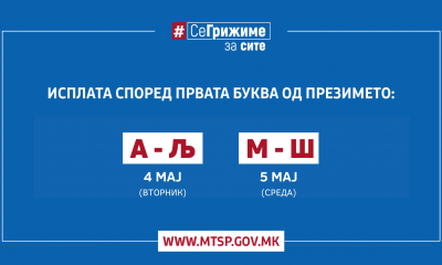 Министерството за труд и социјална политика информира дека денеска почна исплатата на правата од социјална, детска и цивилна заштита за месец април. Корисниците на парични права...