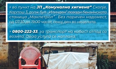 Кабастиот отпад (застарен мебел, електричен и електронски отпад) граѓаните можат да го одложат во пунктот на ЈП „Комунална хигиена“ Скопје, во Карпош 3, долж булеварот „Илинден“,...