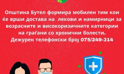 Општина Бутел во однос на мерки за заштита и превенција од ковид-19 формираше мобилен тим кој ќе врши достава на лекови и намирници за возрасните и...