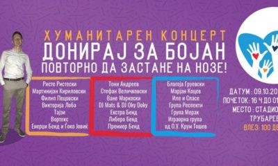 Хуманитарен концерт ќе се одржи на 9 октомври, среда, на стадионот во Трубарево, за собирање средства за младиот Бојан Димитриевски, кому му е потребно скапо лекување...