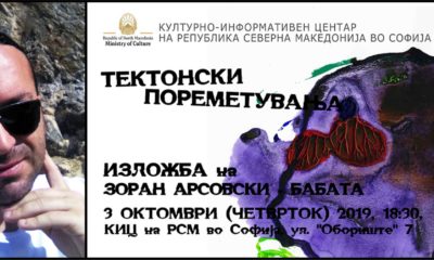 Изложбата „Тектонски пореметувања“ на македонскиот академски ликовен уметник Зоран Арсовски – Бабата ќе биде отворена во галеријата на Културно-информативен центар на РСМ во Софија на 3...
