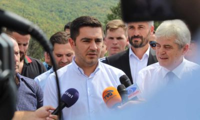 Министерот за економија, Крешник Бектеши, заедно со вицепремиерот и министер за политички систем и односи со заедниците, Садула Дураку, и директорот на Јавното претпријатие „Македонијапат“, Беким...