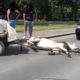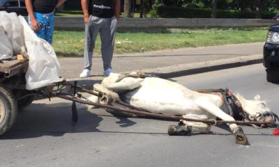 Изнемоштен коњ колабира на улица во Скопје Север. Од фотографиите објавени на страната „Ѕид на сообраќајниот срам“ може да се види дека коњот влечел импровизирана приколка...