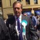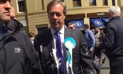 Британскиот политичар Најџел Фараж, познат по евроскептичните ставови, денеска на улица беше погоден со милкшејк. На видеото се слуша глас на маж како му вели на...