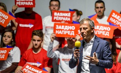 Претседателот на СДСМ, Зоран Заев, членот на Извршниот одбор на СДСМ, Едмонд Адеми, и претседателскиот кандидат Стево Пендаровски, во Тетово повикаа на успешен втор круг од...