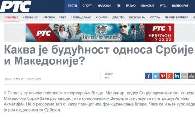Српската телевизија РТС ги анализира српско-македонските односи откако СДСМ ќе формира влада цитирајќи ја програмата на оваа партија на изборите, според која меѓу двете земји нема...