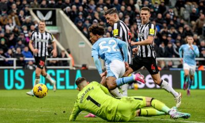 Foto/ EPA Фудбалерите на Манчестер Сити го совладаа Њукасл во натпреварот од 21. коло на Премиер лигата со резултат 3:2 (1:2). На „Сент Џејмс парк“, Њукасл...