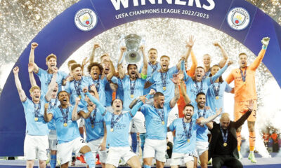 Манчестер сити ја освои тројната круна откако на освоените титули во Премиер лигата и ФА Купот ја додаде титулата во Лигата на шампионите. Фудбалерите на Пеп...