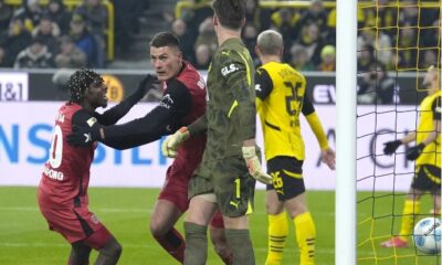 Фудбалерите на Баер Леверкузен славеа против Борусија во Дортмунд на „Вестфален“ (3:2), во дербито од 16. коло на Бундес лигата. Натпреварот доцнеше 15 минути поради метеж,...