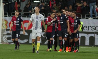 Интер утре може да го загуби третото место во Серија А од лутиот градски ривал Милан, откако на секогаш тешкото гостување на Сардинија загуби со 2:1...