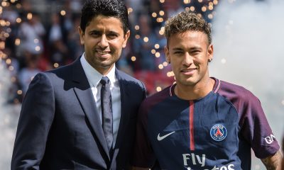Сопственикот на француски, Пари Сен Жермен, Насер Ал Келаифи при потпишувањето на нов спонзоски договор ланецот на хотели „Акор“ одговараше на прашања на новинарите на „Ле...