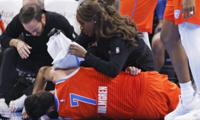 Оклахома изминатата ноќ загуби од Голден стејт Вориорс со 116:127 и остана без центарот Чет Холмгрен. Младиот центар доживеа пех и тешка повреда откако ја скрши...
