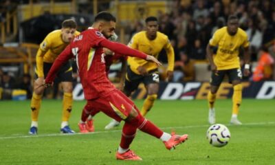 Во натпреварот од шестото коло на англиската Премиер лига, Ливерпул победи со 2:1 на гостувањето кај последнопласираниот тим во лигата Вулверхемптон. Тимот на Арне Слот на...