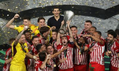 Грчкиот фудбал конечно има клупски европски трофеј. Олимпијакос со победита над Фиорентина ја освои Конференциската лига. Навивачите на клубот од Пиреја на спектакуларен начин ја прославија...