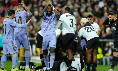Муктар Дијакаби, во саботата доживеа тешка повреда во финишот на натпреварот меѓу Валенсија и Реал Мадрид (2:2). Како изгледаше моментот кога Аурелиен Чоамени ненамерно го повреди...