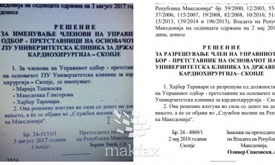 Еден од роднините на ексминистерот за здравство, Арбен Таравари, Хајбер, во најновиот број на „Службен весник“ е разрешен од член на Управниот одбор на државната Клиника...