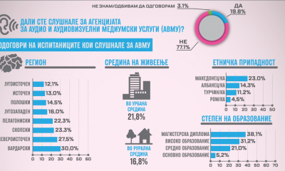 Мнозинството граѓани не чуле за работата на Агенцијата за аудио и аудиовизуелните медиумски услуги и на Агенцијата за електронски комуникации, покажа истражувањето на јавното мислење за...